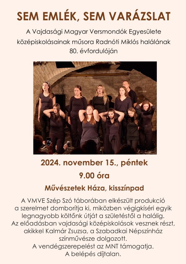 Гостовање је подржано од стране Националног савета Мађарске националне мањине у оквиру путујућег програма.